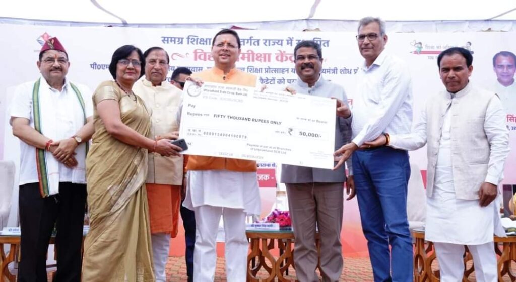 देहरादून:- मुख्यमंत्री पुष्कर सिंह धामी एवं केन्द्रीय शिक्षा मंत्री धर्मेंद्र प्रधान ने आज देहरादून स्थित शिक्षा निदेशालय में राज्य के विद्या समीक्षा केन्द्र का लोकार्पण करने के साथ ही राज्य के 141 पी.एम. श्री विद्यालयों एवं नेताजी सुभाष चन्द्र बोस आवासीय विद्यालय का शिलान्यास किया। इस अवसर पर उन्होंने मुख्यमंत्री उच्च शिक्षा मेधावी छात्रवृत्ति योजना एवं मुख्यमंत्री उच्च शिक्षा शोध प्रोत्साहन योजना का शुभारंभ भी किया। उन्होंने एन.डी.ए एवं आई.एम.ए में चयनित कैडेट को पुरस्कार की धनराशि भी प्रदान की।