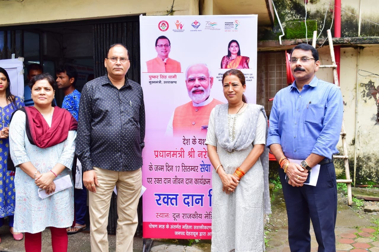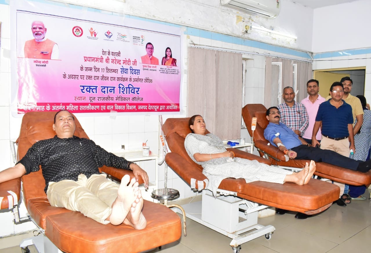 आज प्रधानमंत्री नरेंद्र मोदी के जन्मदिन के अवसर पर महिला सशक्तिकरण एवम् बाल विकास मंत्री रेखा आर्य ने राजकीय दून अस्पताल पहुंची जहाँ उन्होंने रक्तदान किया। इस अवसर पर कैबिनेट मंत्री रेखा आर्य ने कहा की आज वह पहली बार अपना रक्तदान कर रही हैं। पहली बार रक्तदान करने पर उन्हें किसी तरह की दिक्कत नहीं हुई, कैबिनेट मंत्री ने सभी लोगों से अपील करते हुए कहा की हर व्यक्ति को अपने जीवन मे रक्तदान अवश्य करना चाहिए। रक्तदान करने से कहीं ना कहीं हम किसी जरूरतमंद की मदद कर सकते हैं।