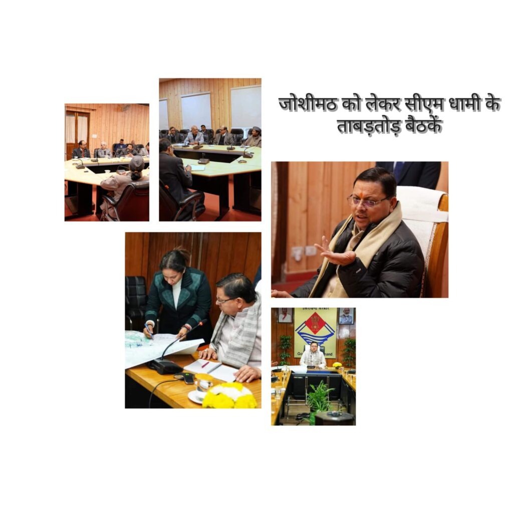 5 जनवरी 2023:- जोशीमठ भू धंसाव के मामले में मुख्यमंत्री ने गंभीरता दिखते जोशीमठ भू धंसाव को लेकर गढ़वाल कमिश्नर सुशील कुमार, आपदा प्रबंधन सचिव रंजीत कुमार सिन्हा, भूस्खलन न्यूनीकरण केन्द्र के वैज्ञानिक सांतुन सरकार, आईआईटी रुड़की के प्रोफेसर डॉ. बीके माहेश्वरी सहित तकनीकी विशेषज्ञों की पूरी टीम जोशीमठ जाने के निर्देश दिए थे। विशेषज्ञों की टीम द्वारा प्रभावित क्षेत्रों का विस्तृत सर्वेक्षण किया जा रहा है। जोशीमठ में भू-धसाव के दृष्टिगत जिला प्रशासन ने बीआरओ के अन्तर्गत निर्मित हेलंग बाईपास निर्माण कार्य, एनटीपीसी तपोवन विष्णुगाड जल विद्युत परियोजना के अन्तर्गत निर्माण कार्य एवं नगरपालिका क्षेत्रान्तर्गत निर्माण कार्यों एवं जोशीमठ-औली रोपवे का संचालन अग्रिम आदेशों तक रोक दिया है।